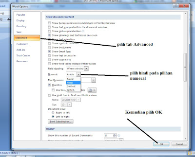 Nah, pada langkah 3 ini, ada sedikit kerancuan, padahal yang kita ingin kan merubahnya menjadi Bahasa Arab, tapi pada langkah ini kita harus merubah tab numeral dari arabic ke hindi.